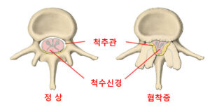 척추관은 척수와 신경이 지나가는 통로로 척추뼈의 추체, 추간판(디스크), 뒤로는 척추뼈의 뒷부분인 추궁판으로 둘러싸여 있습니다. 이공간의 만성적인 협착은 신경근 다발을 일으켜 걸을때 통증이 악화되는 파행을 포함하여 여러 신경 증상 일으킵니다.