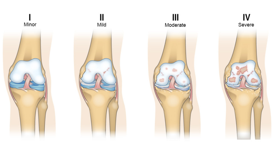 대표적인 증상은 무릎이 아프고 붓거나 운동 범위가 줄어드는 것입니다. 삐걱거리는 소리가 들리기도 합니다. 무릎에 걸리는 하중으로 인해 병이 진행되면, 연골 조직이 많이 닳으면서 무릎 통증이 악화되고 다리가 휘거나 절룩거리는 증상이 나타날 수 있습니다.